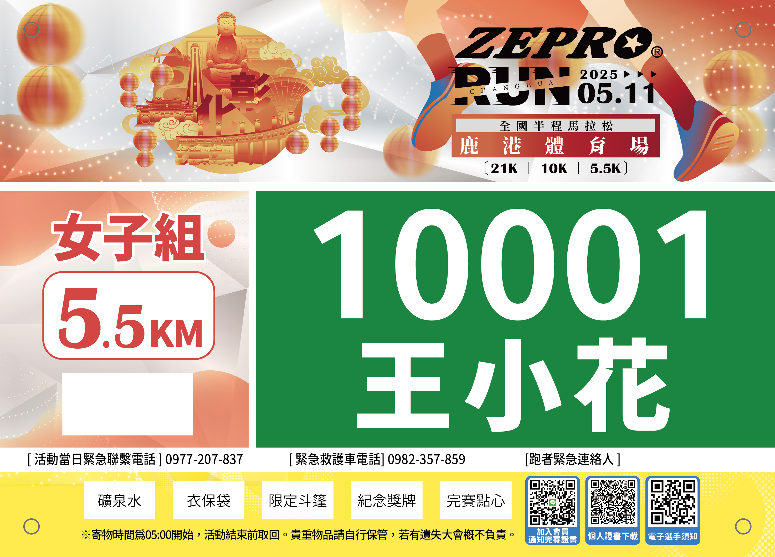 - 晶片、號碼布若有缺漏請最慢於活動前三日致電全統報名網客服反應登記,否則一律視為遺失處理現場不補發。