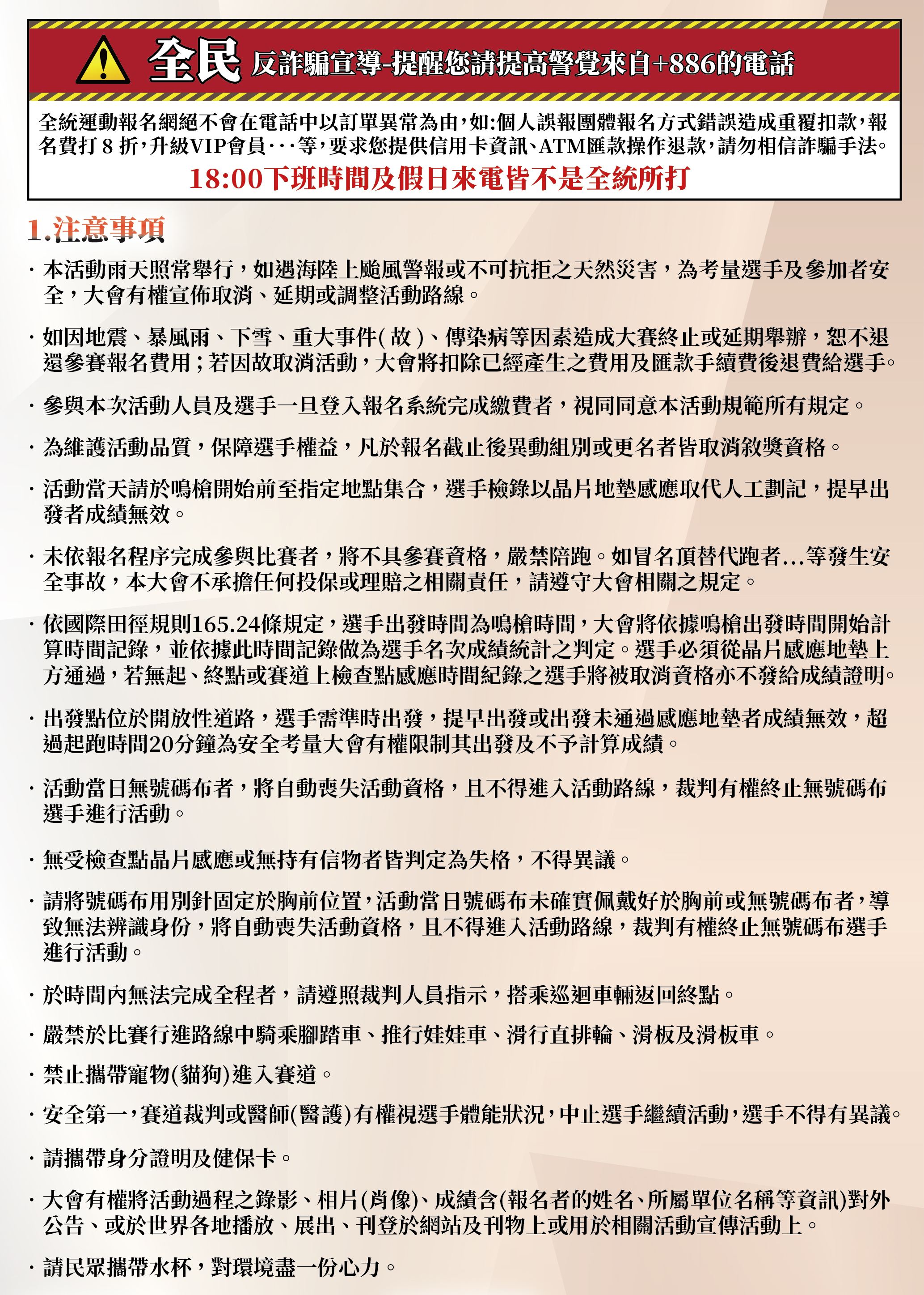 - 收到物資,確認號碼布,請掃描號碼布上的QRcode,可以確認選手須知。