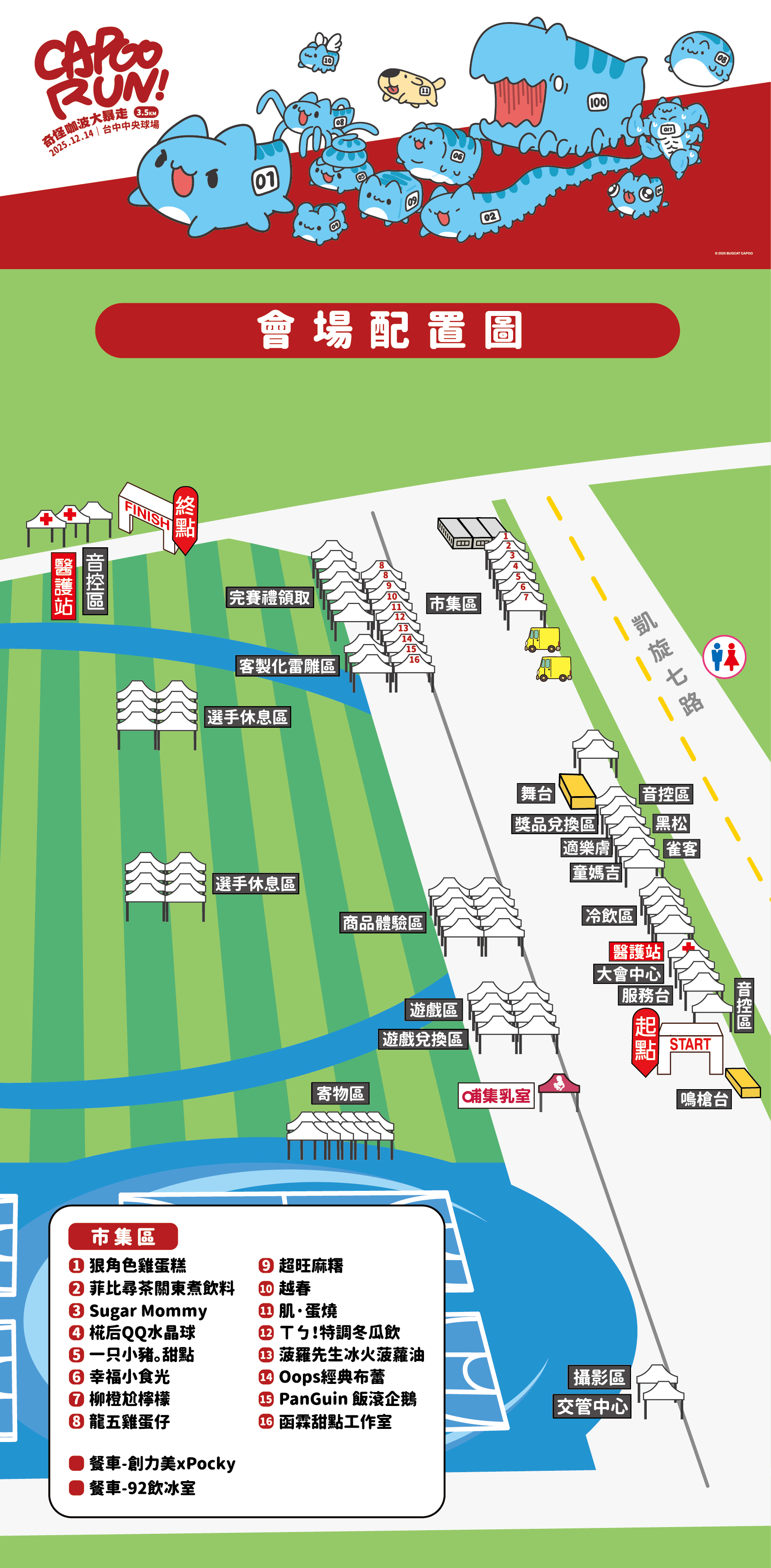 - 請中籤跑者務必活動當天12月14日攜帶報名號碼布,至活動舞台右側「見面會號碼牌領取帳篷」領取見面會號碼牌。(點我看場配圖