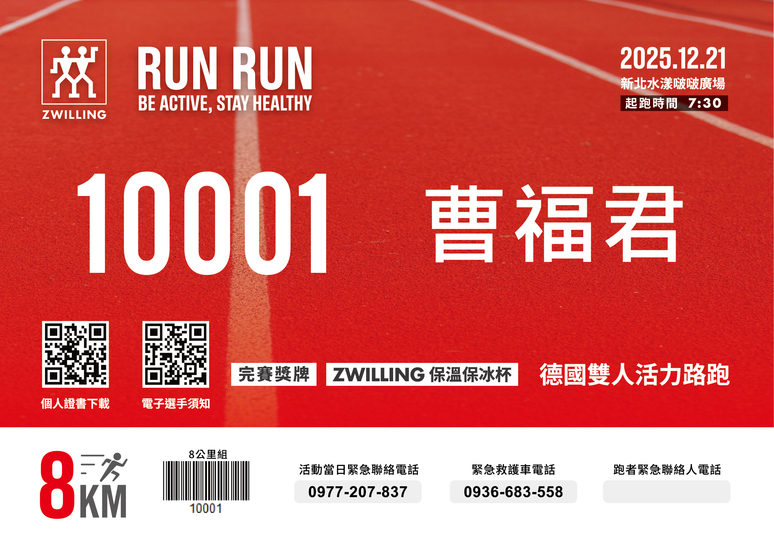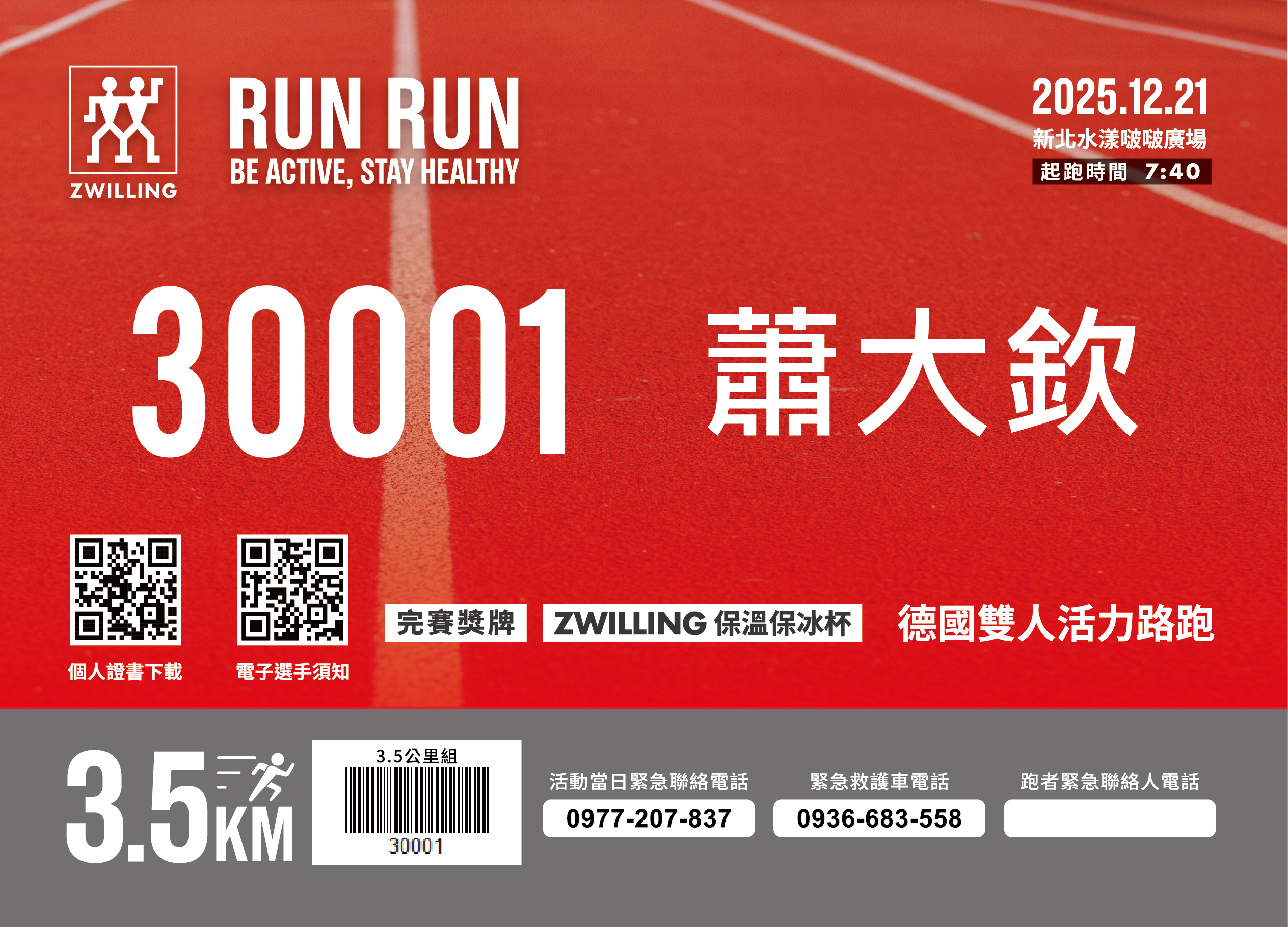 | 活動名稱 | ZWILLING RUN RUN 德國雙人活力路跑 |