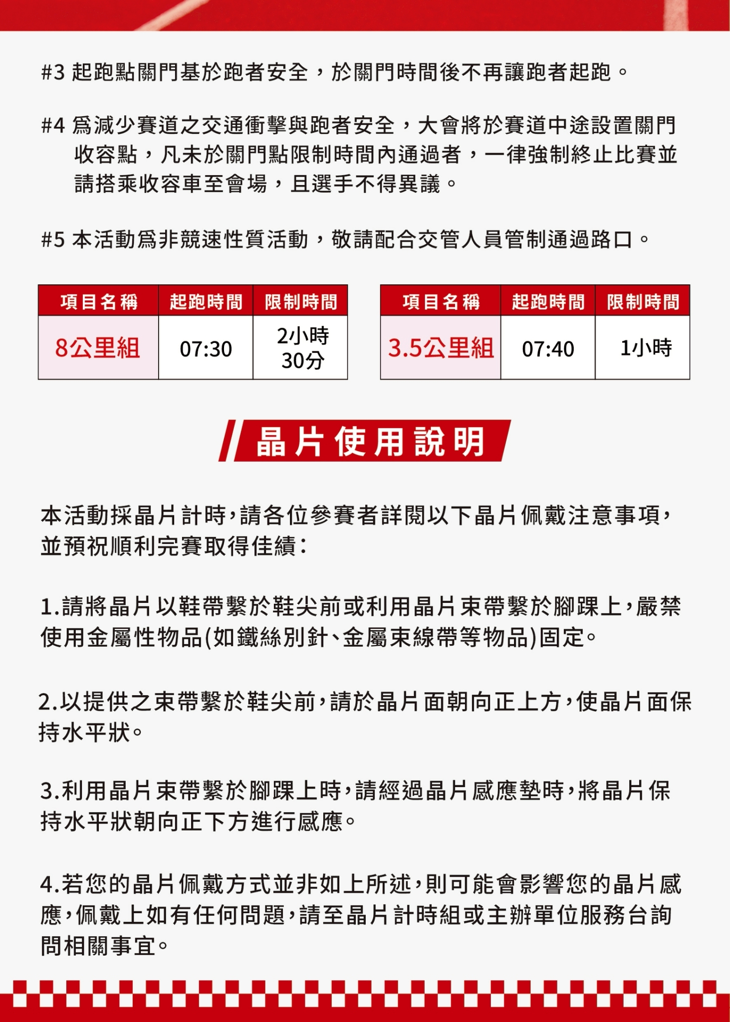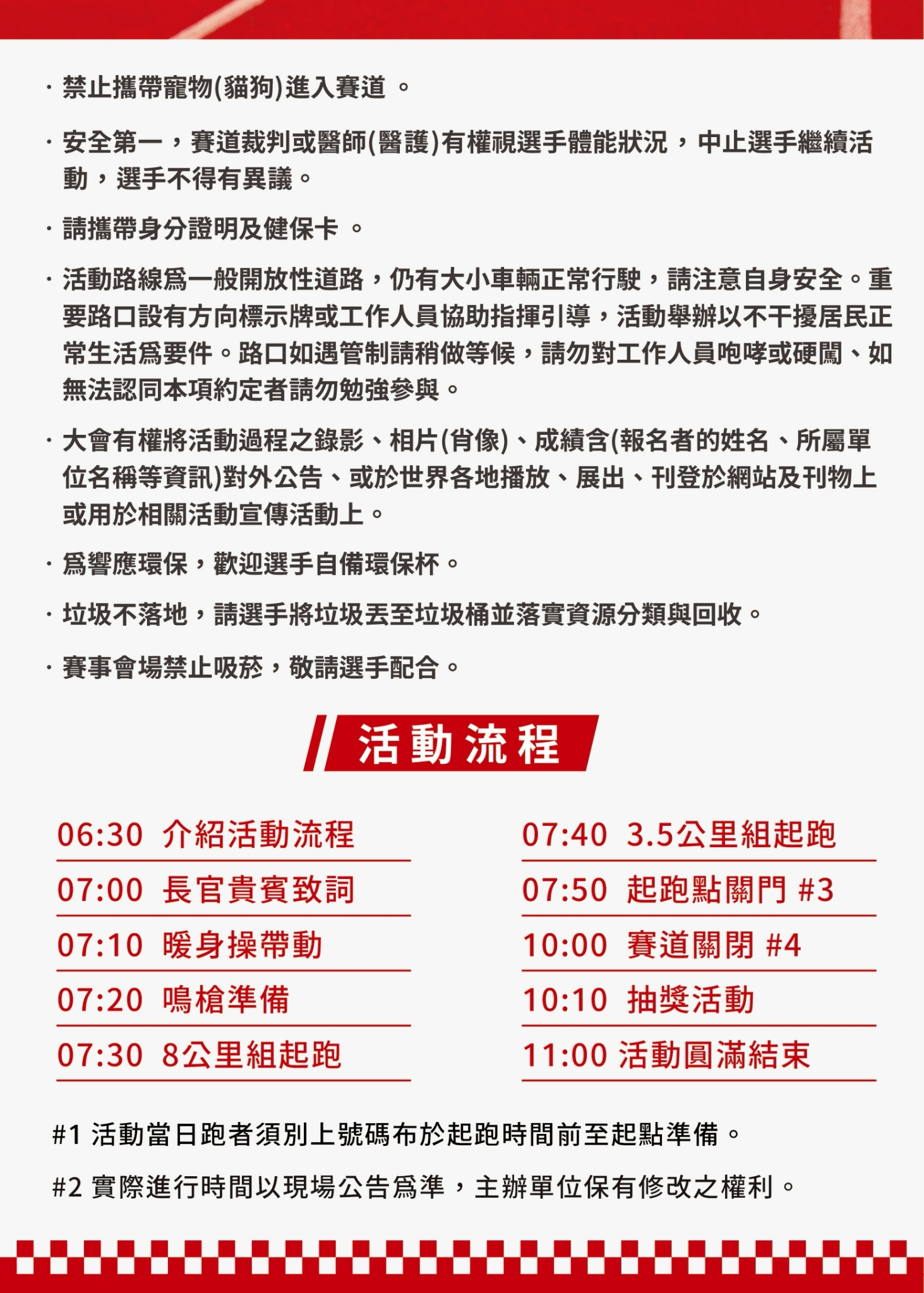 | 07:40 | 3.5公里組起跑 | 限時1小時 |