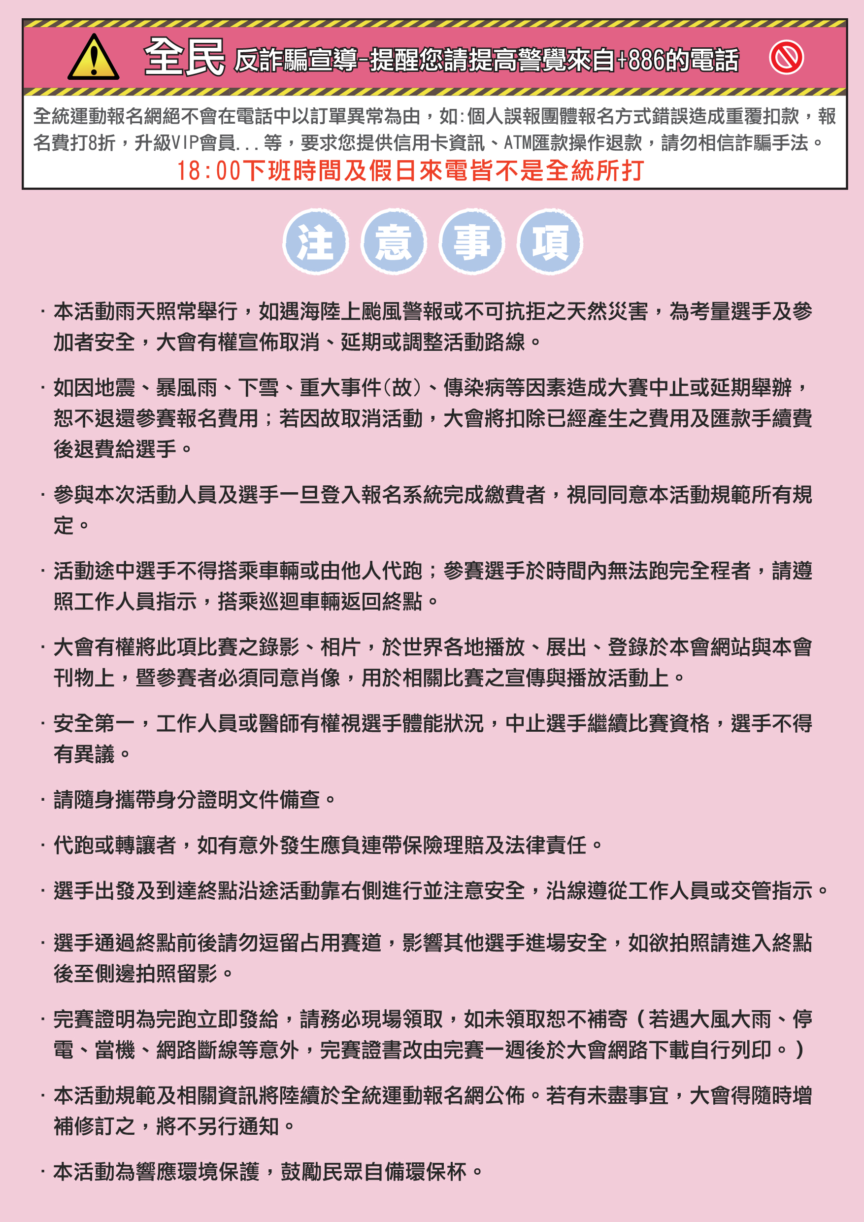 ※5.於賽道時間後未抵達終點者,一律強制乘坐收容車返回會場。