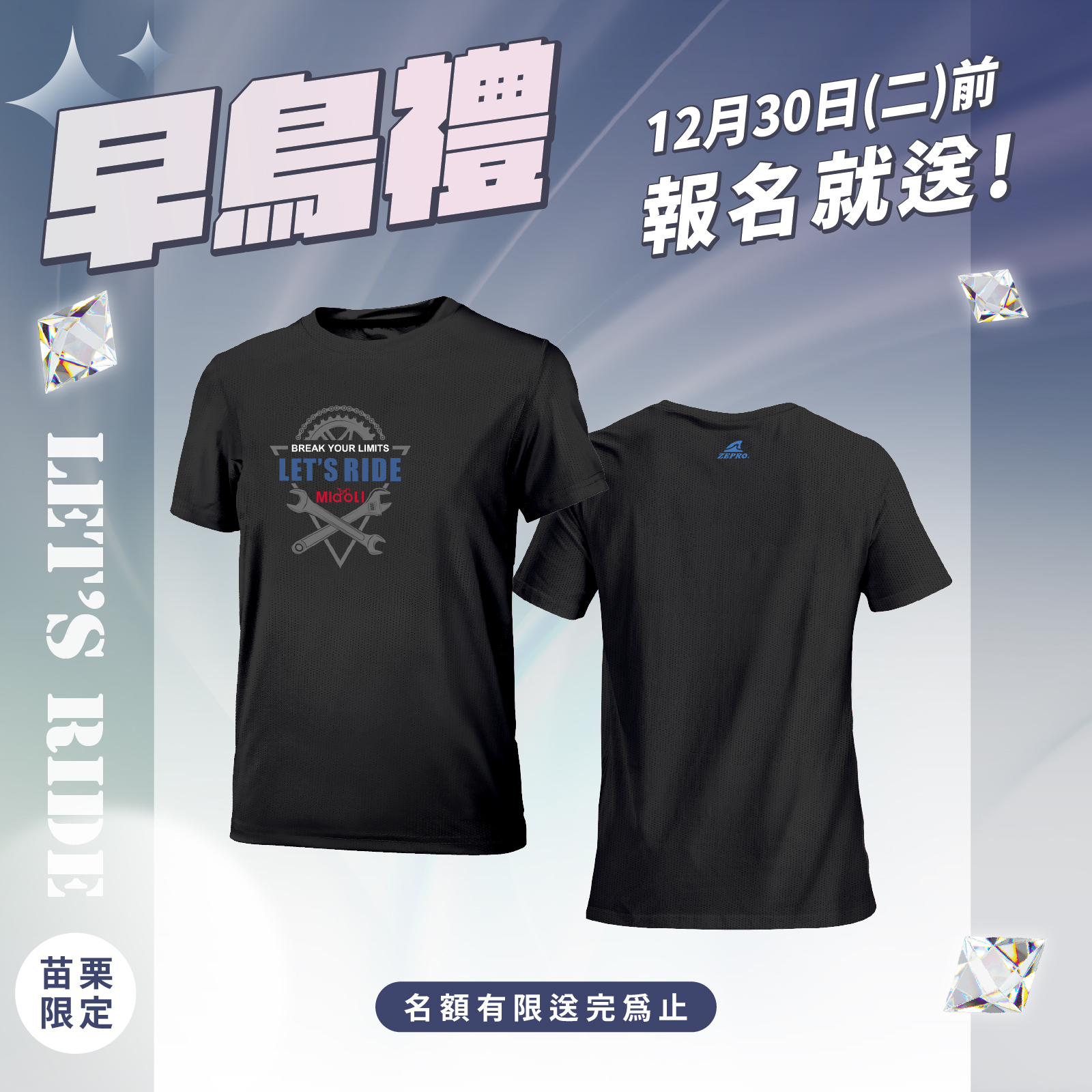早鳥報名禮:高透氣短袖運動上衣一件。