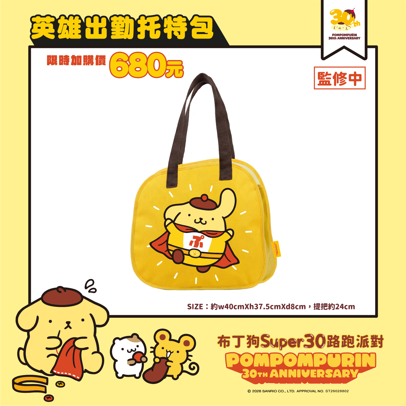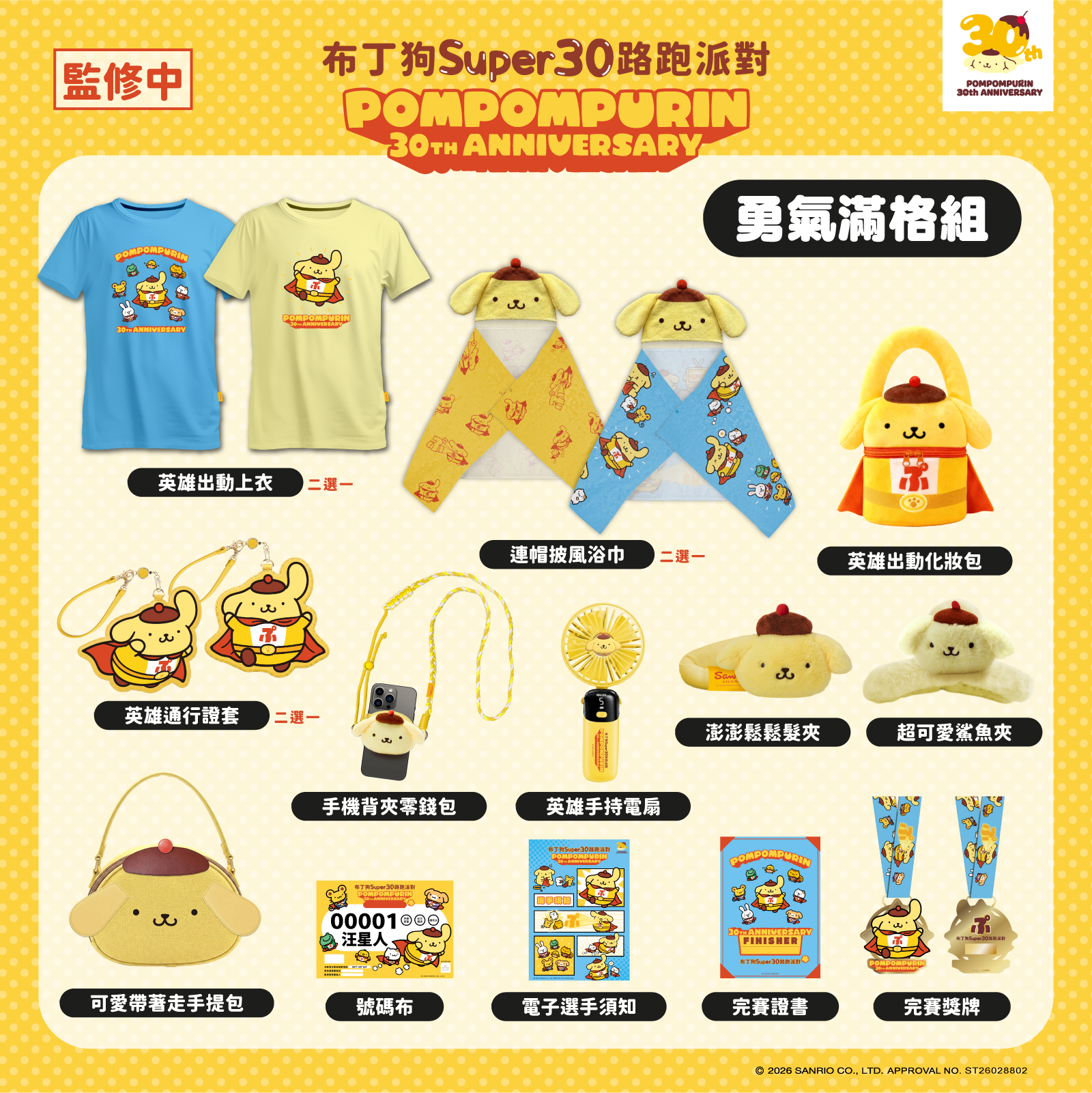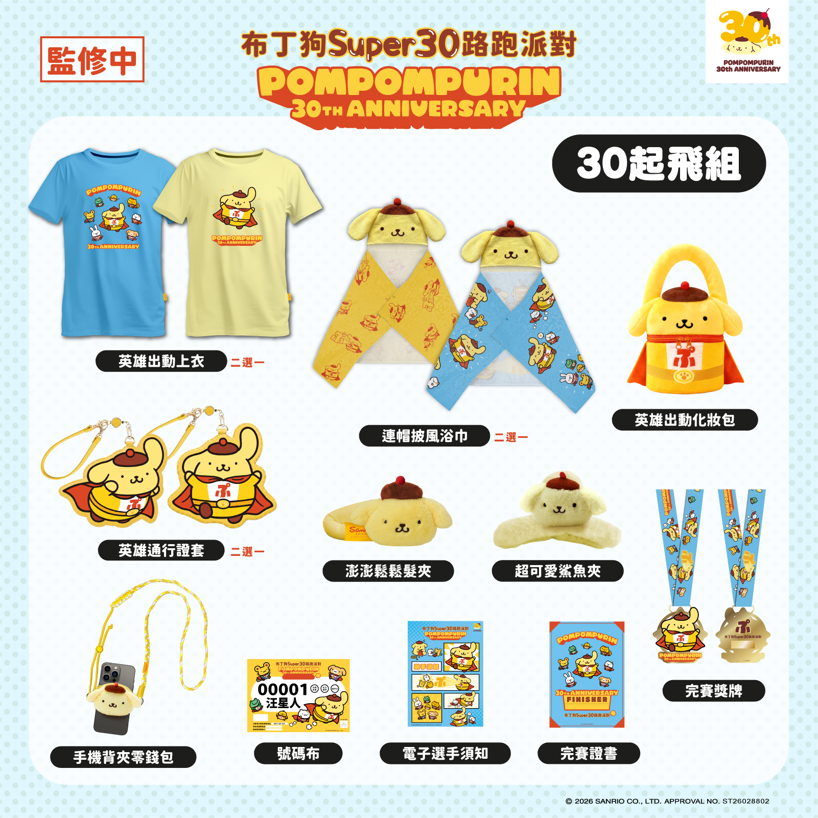 報名即享加購商品資格,可額外選購Super30紀念上衣(超人黃/雲朵白雙色)、布丁狗超人娃娃及英雄出勤托特包。此系列商品同樣採用超級英雄布丁狗造型,僅開放參賽者加購,是收藏控不可錯過的完整收藏機會!